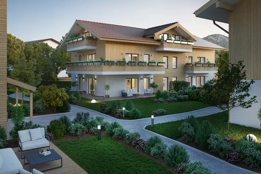 - 3 Mehrfamilienhäusern in modernem, alpenländischem Stil
